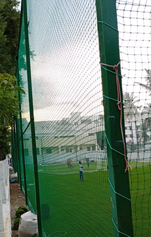 Terrace cricket nets are specialized installations designed for practicing cricket skills in limited spaces, such as rooftops or terraces. Constructed from durable materials like nylon or polyethylene, these nets offer a compact and efficient solution for batting and bowling practice, accommodating the confined dimensions of terraces. Expert installation ensures the nets are securely anchored, providing a safe and controlled environment for cricket enthusiasts to hone their skills. The nets are tailored with appropriate mesh sizes and configurations to facilitate consistent ball rebound and visibility. Regular maintenance and inspections uphold the netting's integrity, ensuring a conducive and safe space for terrace-based cricket training sessions and recreational play.